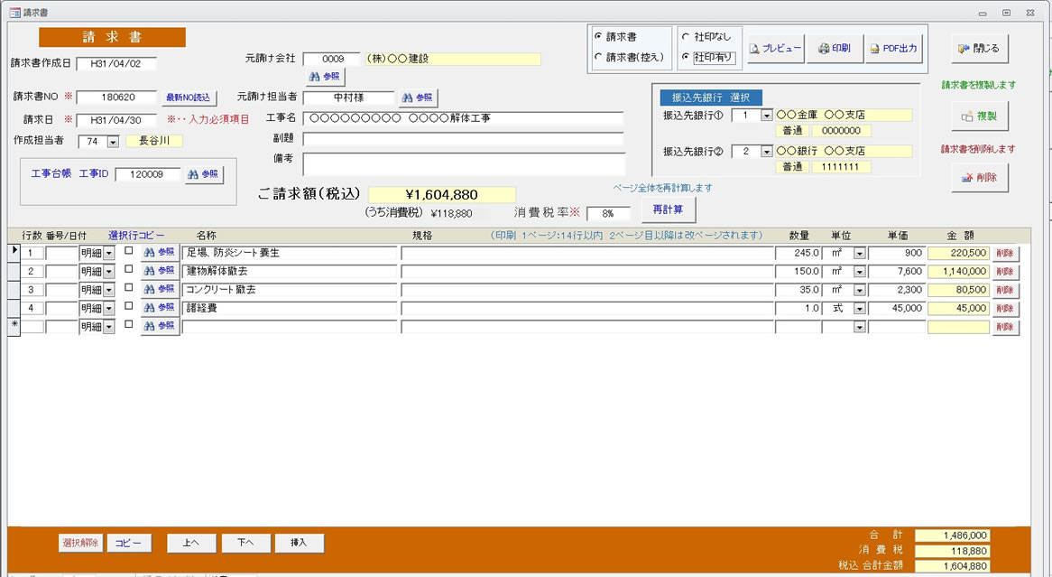 Access 業務管理システム インボイス 適格請求書への改造をしました。
